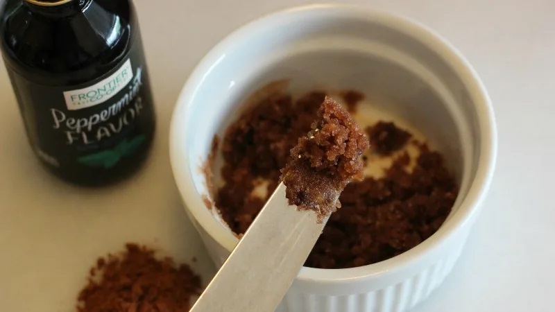 If you prefer something sweeter you could try using cocoa powder and peppermint extract. This will not only be fantastic for your lips but if any ends up on your tongue, it is a delicious treat as well.
